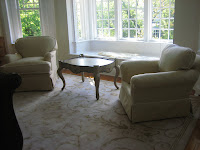 When choosing fabric for your next project, there are a lot of things to take into consideration. First and foremost is the application it is being used for. You would not pick the same fabric to upholster a sofa as you would to make silky drapes, for example. After deciding on your application, choose a weight of fabric depending on your project. Remember not all fabrics can be used for every project. Take into account for example welting. If you are making a slipcover with welting you need to choose a fabric that can be used on the bias nicely without too much bulk. On that note, lets talk first about slipcovers. It is what I have been doing the most of lately. Slipcovers can vary in style. First decide what kind of slipcover style you like. If you like it to look very structured like the original piece, you should choose an lightweight upholstery fabric. Feel free to use textured fabrics. It adds a lot of character without making it too busy. This sofa was done in a tone on tone embroidered print. The detail on the fabric is beautiful without being overpowering. The weight is enough to be structured but not too thick. You have to be able to make folds with it and manipulate it on all the curves.