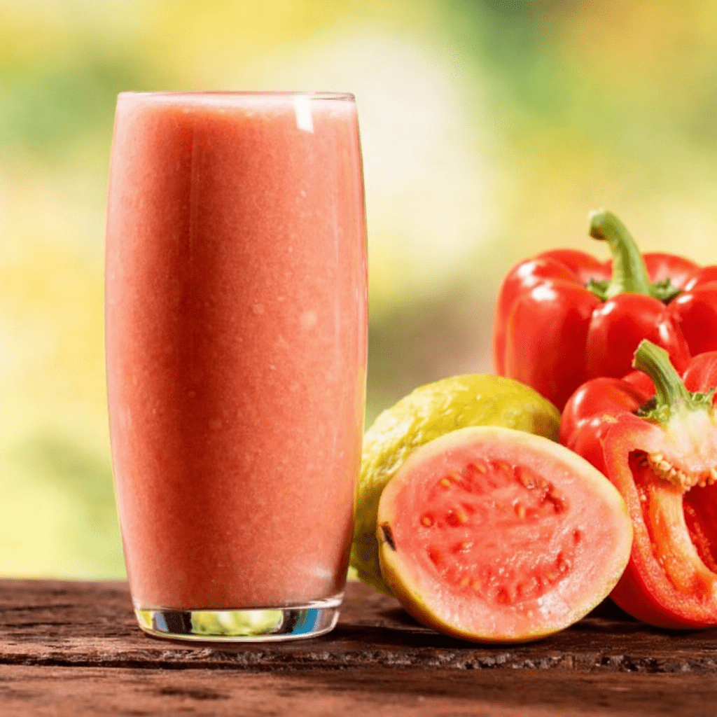 A homemade juice made with fresh guava and red bell pepper. Packed with vitamin C, fiber, and antioxidants, it’s actually a powerful immunity booster.